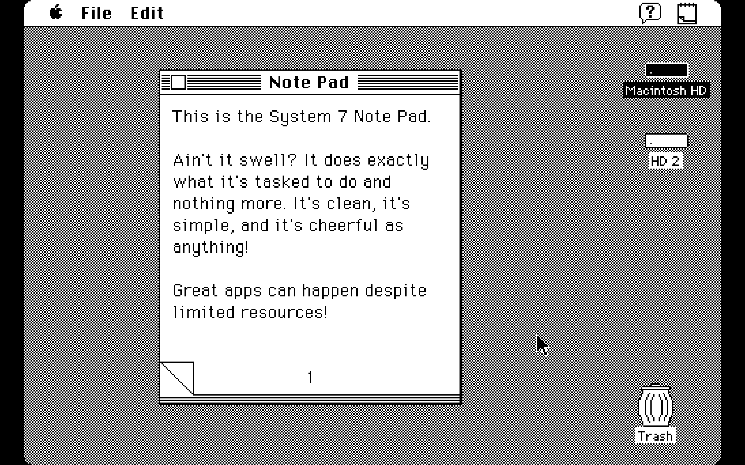 This afternoon, I was using my Linux notebook (a ThinkPad 11e running Pop!_OS) and I came across a useful bash script. I wanted to stash it someplace where it would stay handy. I needed a modern successor to the old Mac System 7 "Notes" desk accessory.
