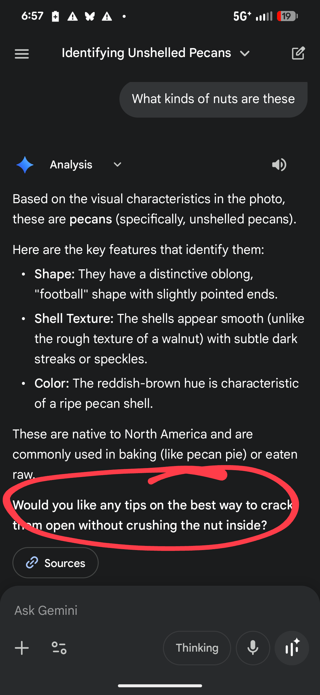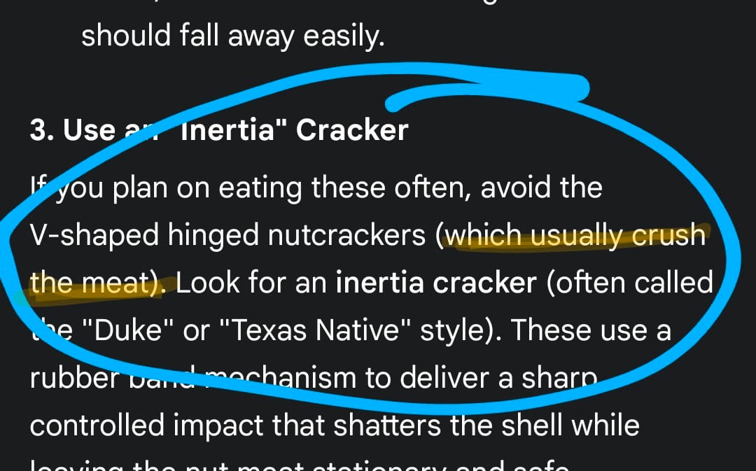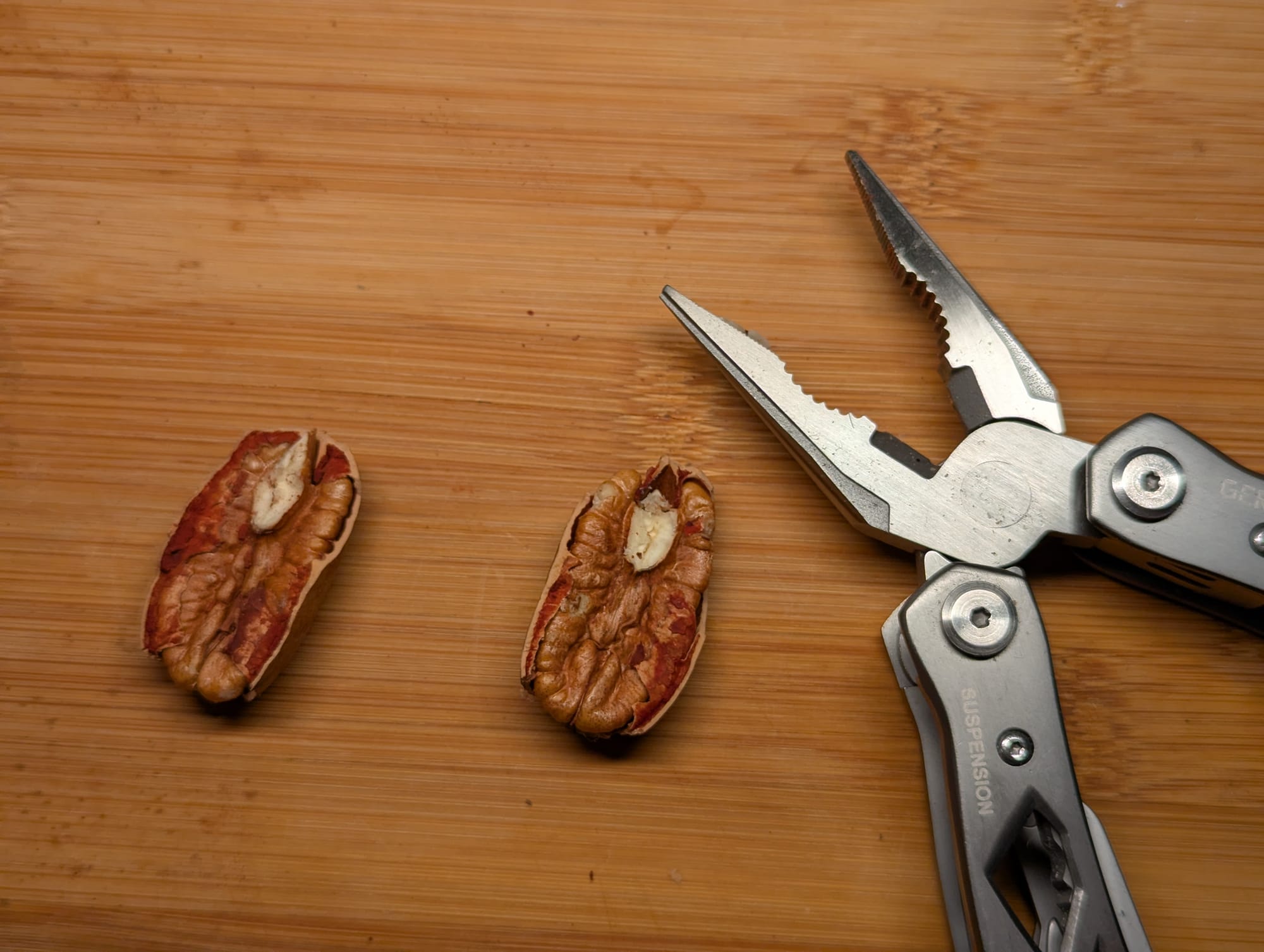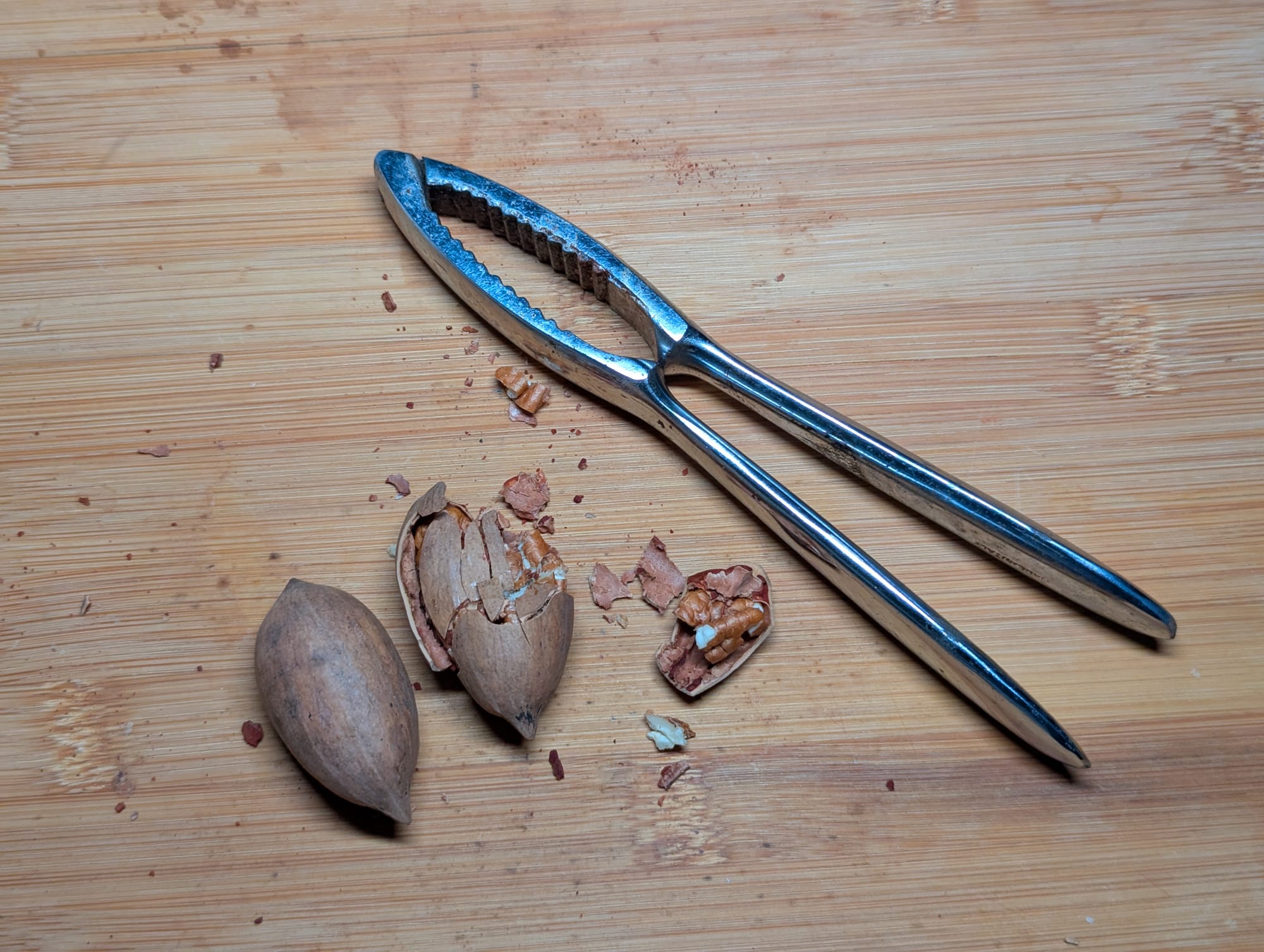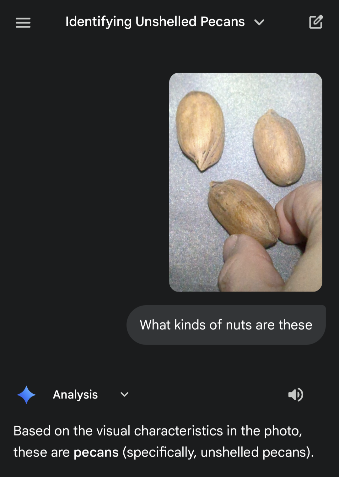 Gemini made quick work of the identification. Hooray! I love pecans. The correct nutmeat-extraction tool is sourced from inventory but the results were not optimal.